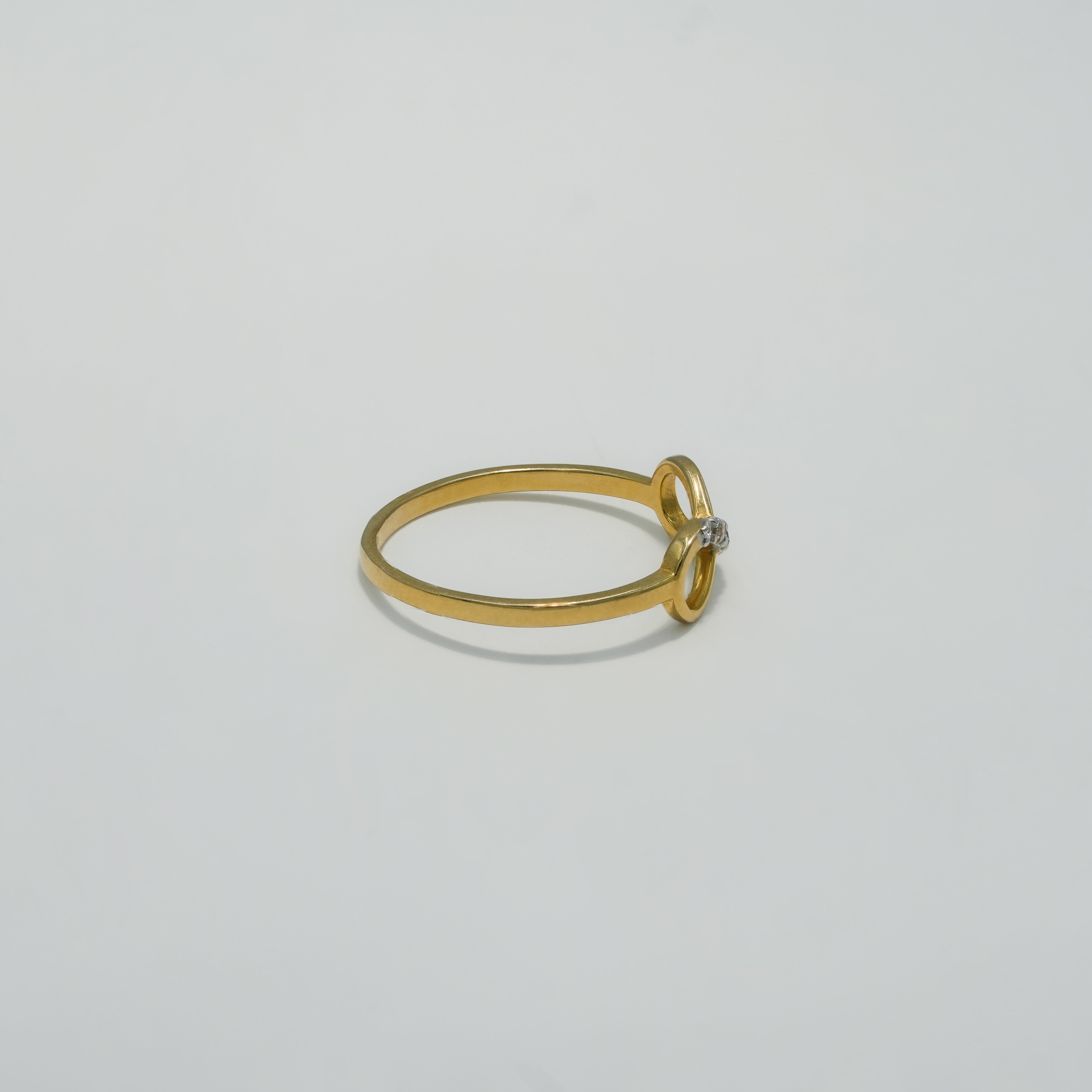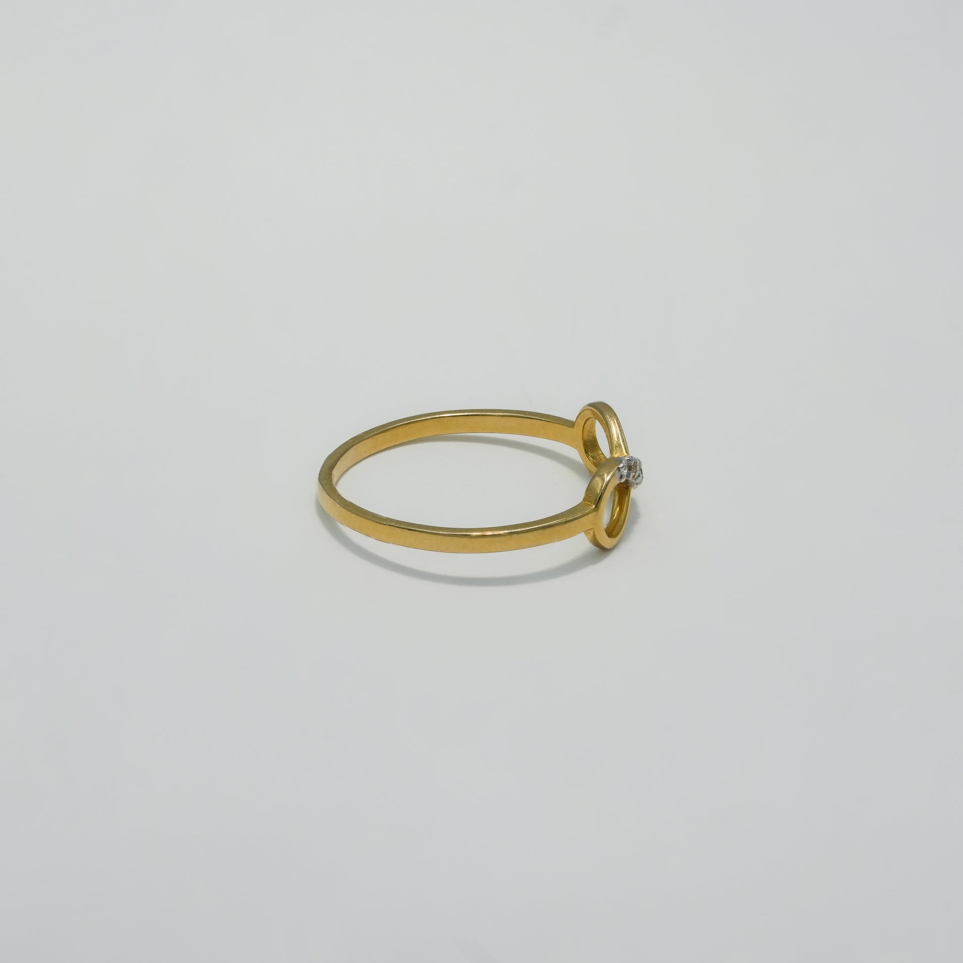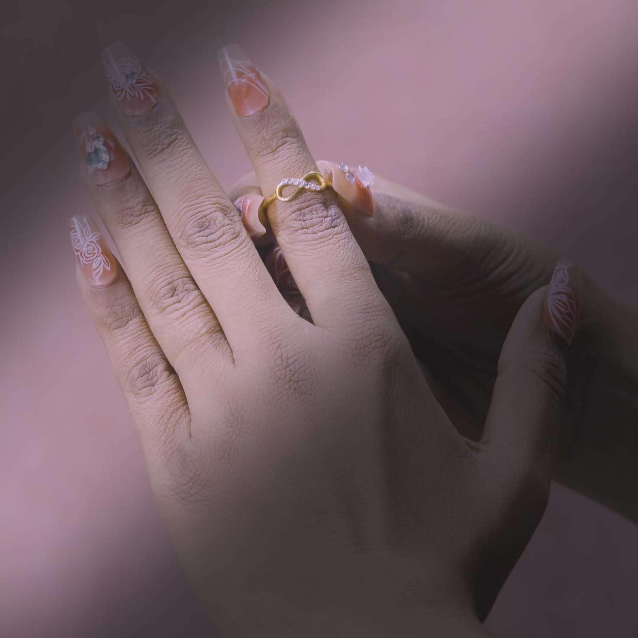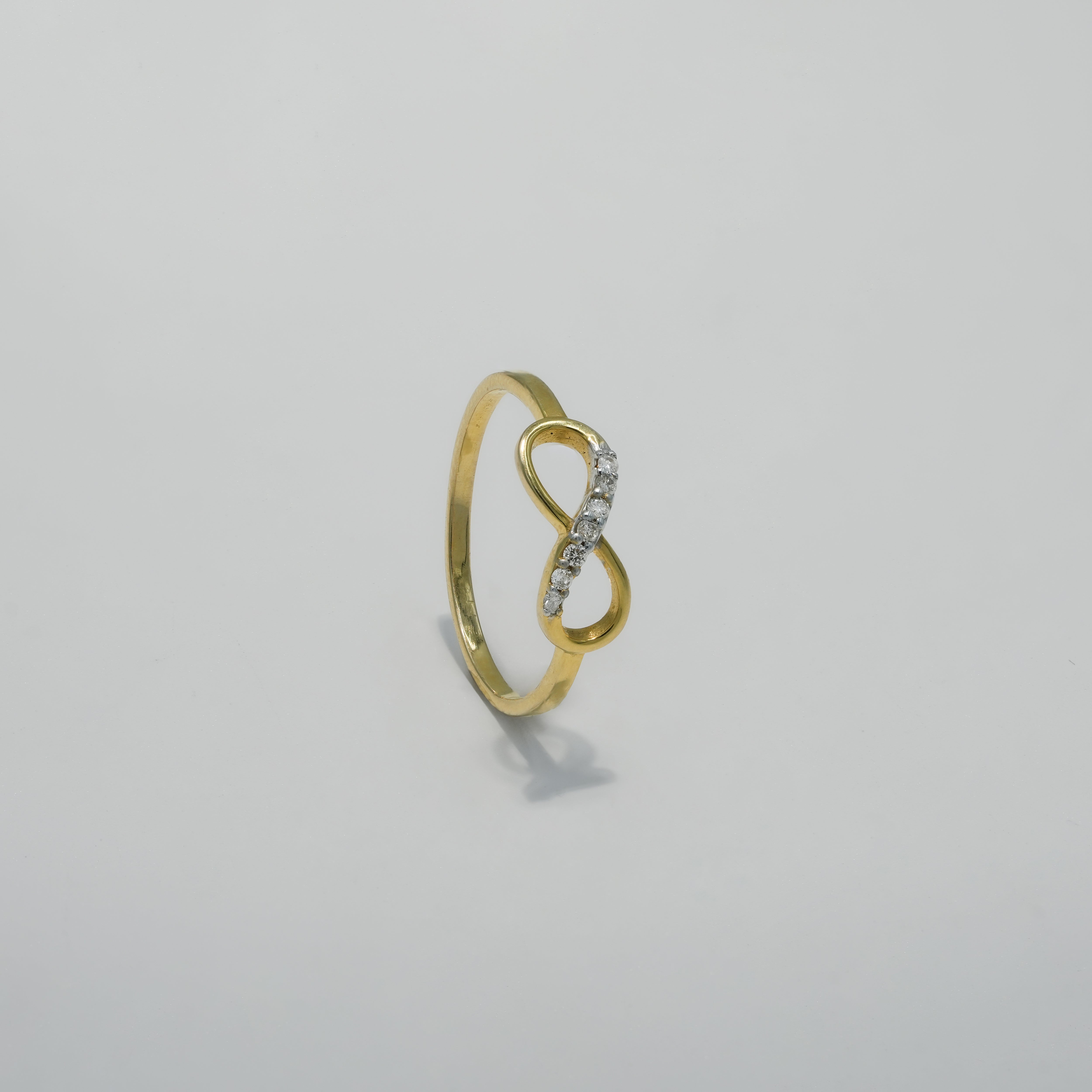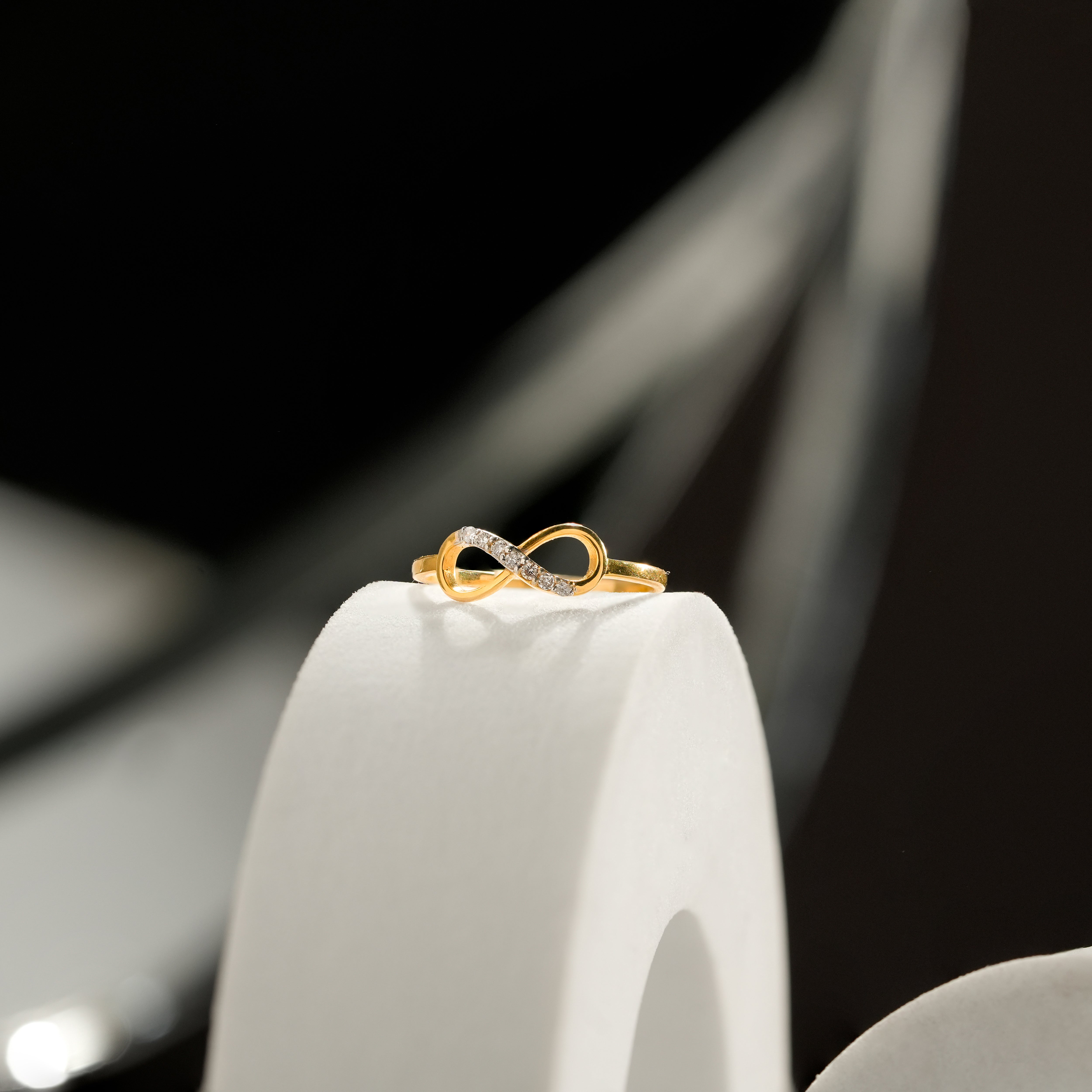 This graceful gold ring features a flowing infinity-inspired silhouette, symbolizing continuity and enduring connection. One side of the elegant curve is highlighted with a row of sparkling diamond accents, adding refined brilliance without overpowering the design. The slender gold band offers a comfortable fit and a clean profile, making it ideal for everyday wear or subtle occasion styling. Sophisticated yet understated, this ring is a timeless expression of modern elegance and thoughtful craftsmanship.