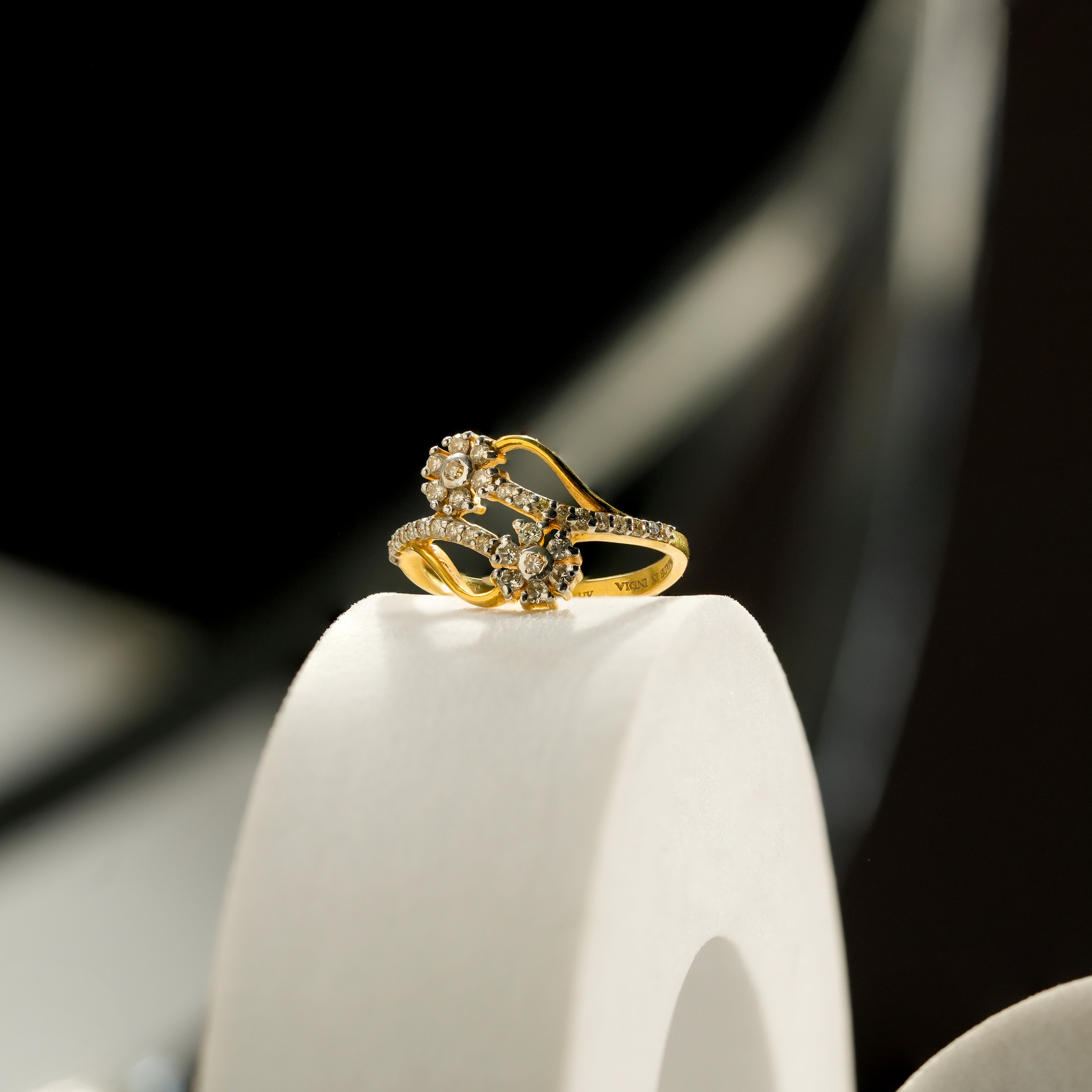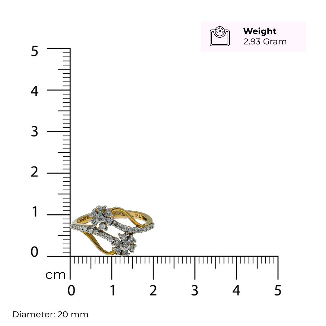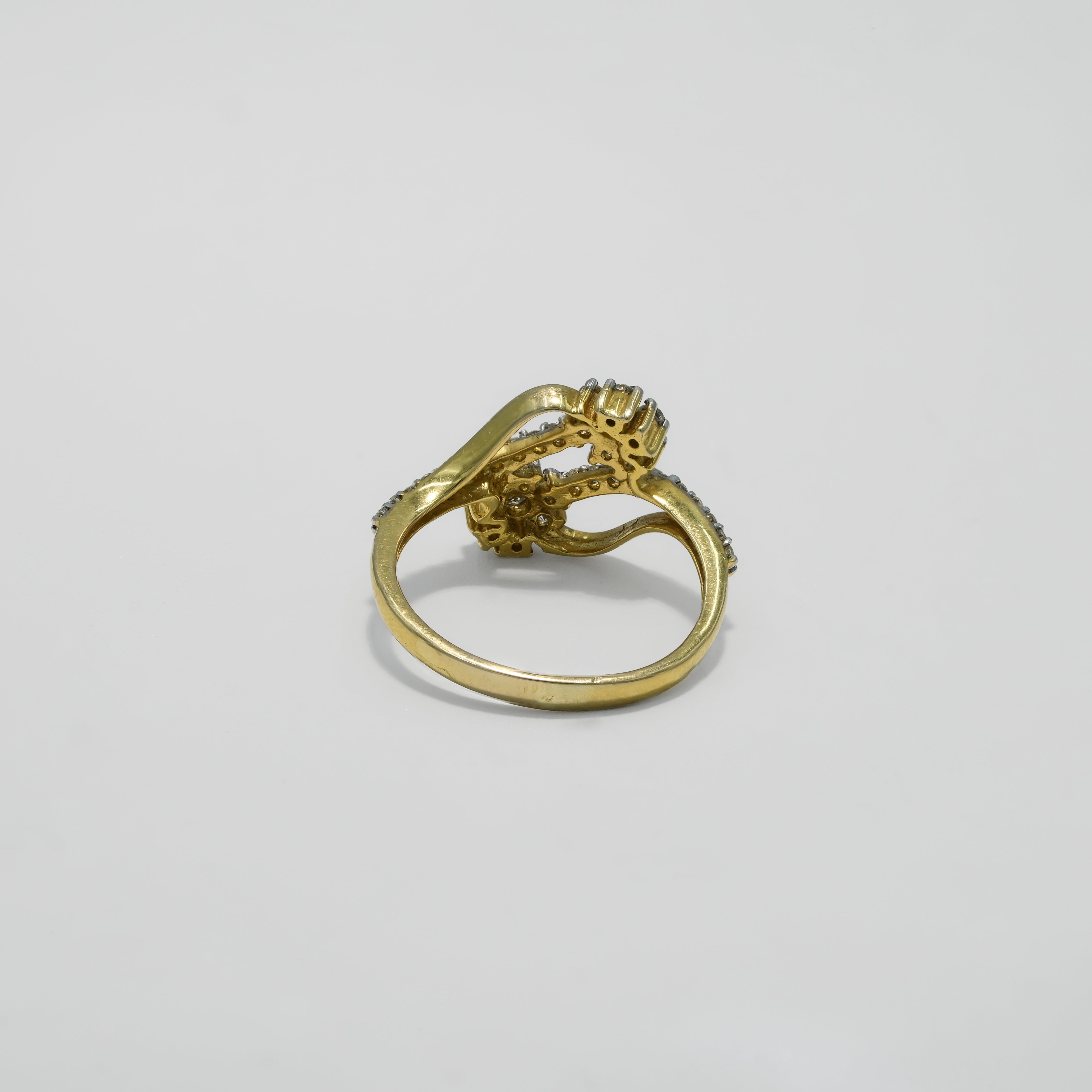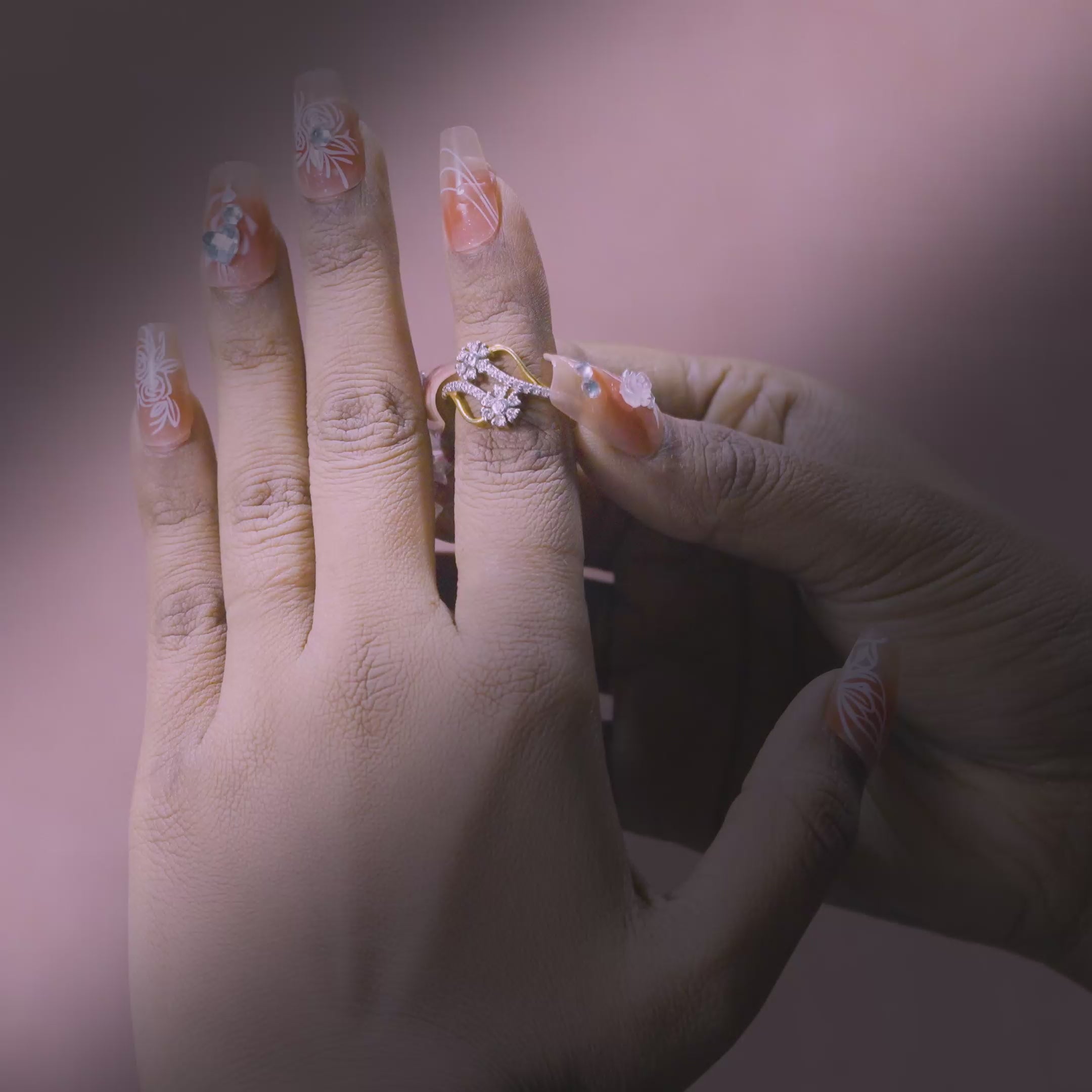 This sophisticated gold ring features an elegant interlaced design, highlighted by a graceful cluster of natural diamonds. The overlapping diamond-set curves create depth, movement, and a refined sparkle from every angle. Crafted to balance modern styling with timeless appeal, the ring offers a luxurious yet wearable profile. Ideal for special occasions or as a statement everyday piece, it reflects fine craftsmanship, thoughtful detailing, and enduring brilliance.