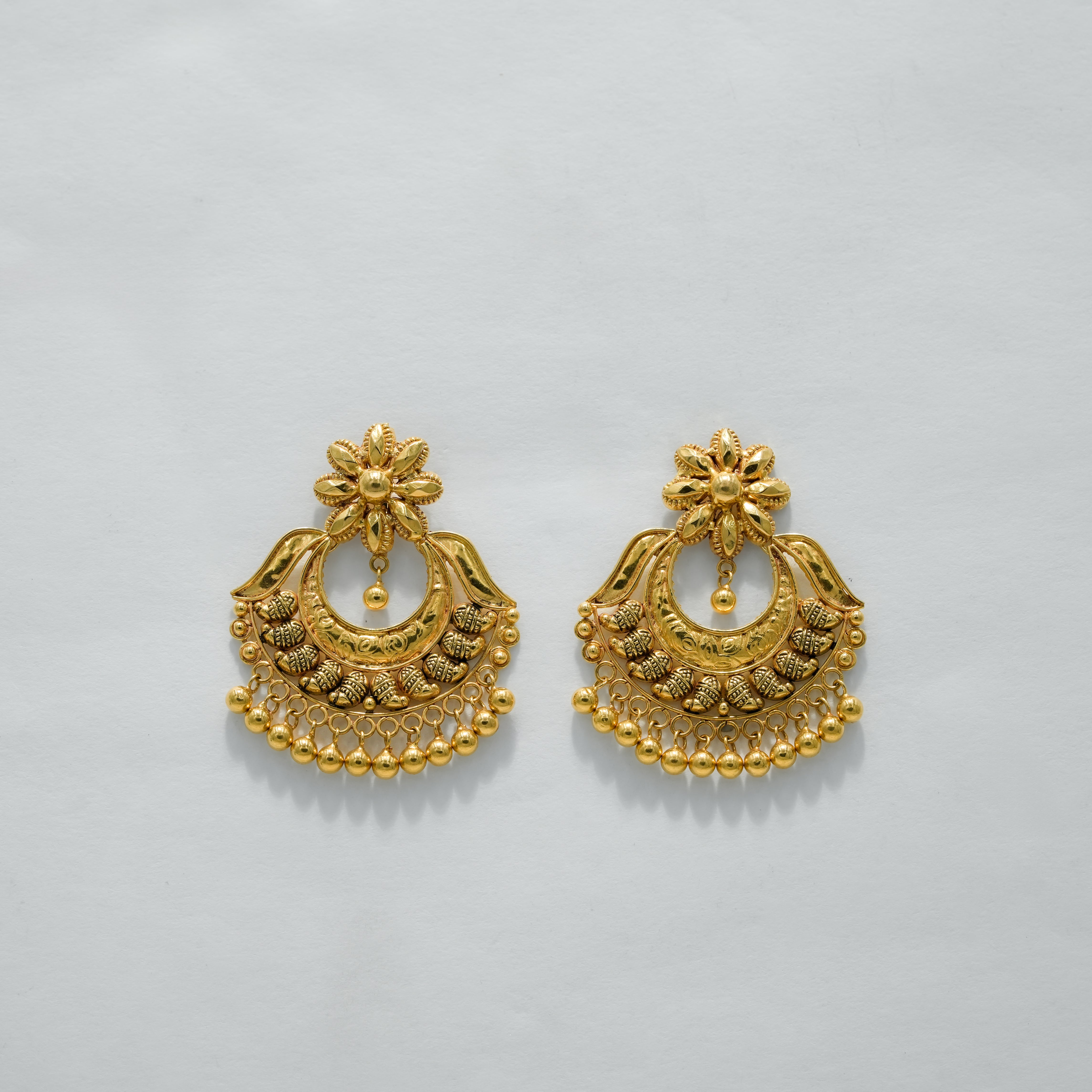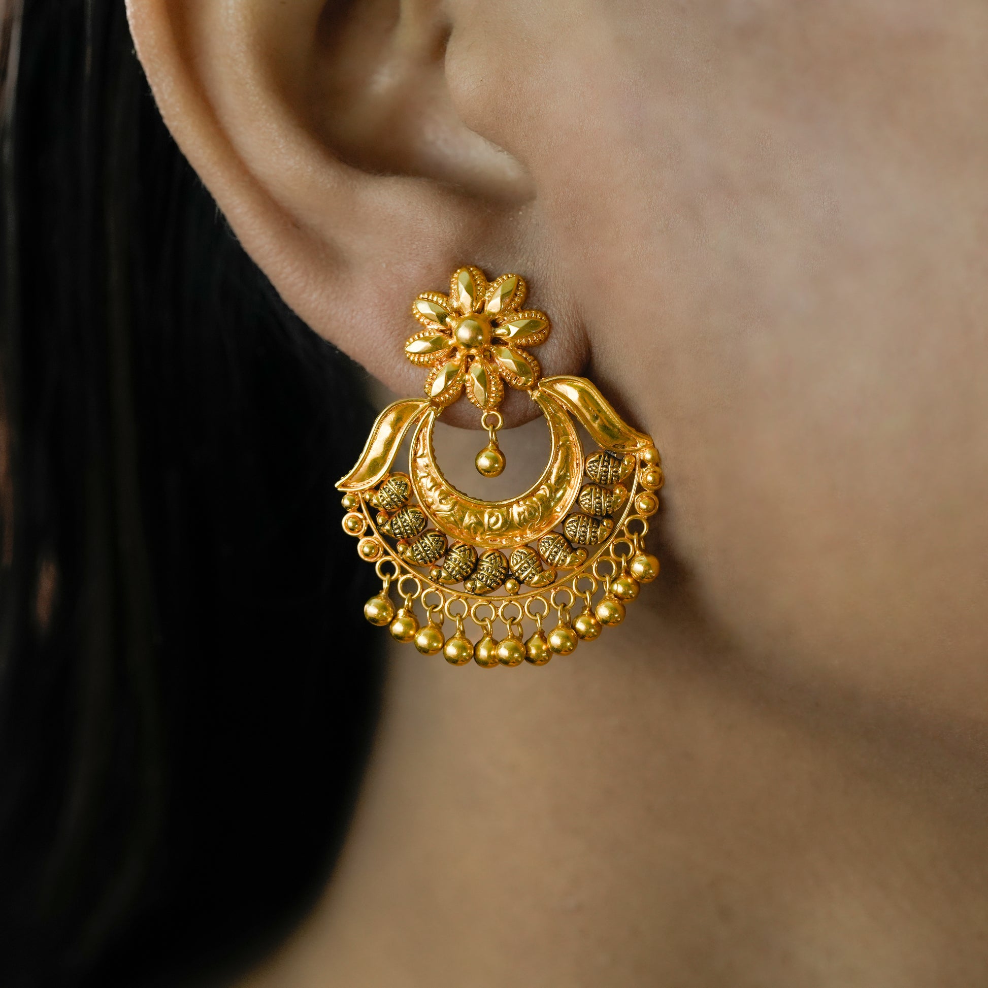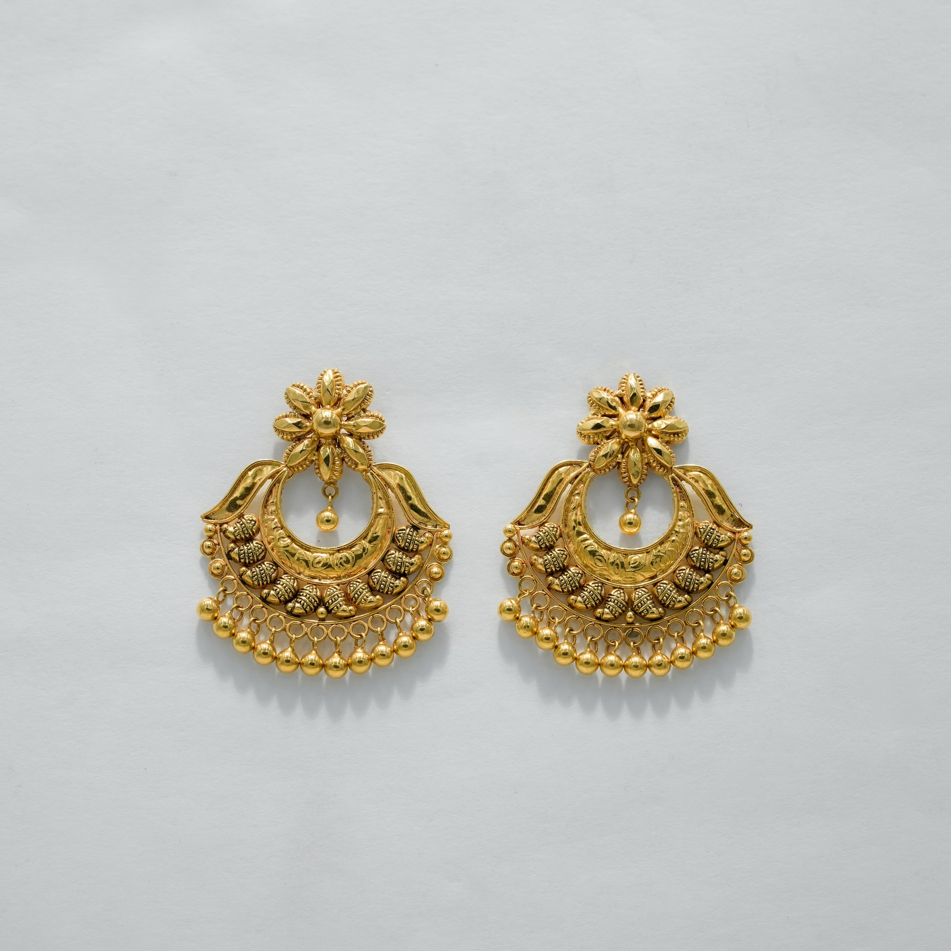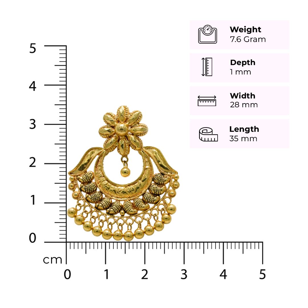 22k Yellow Gold Antique Finish Traditional Gold Chandbali Earrings