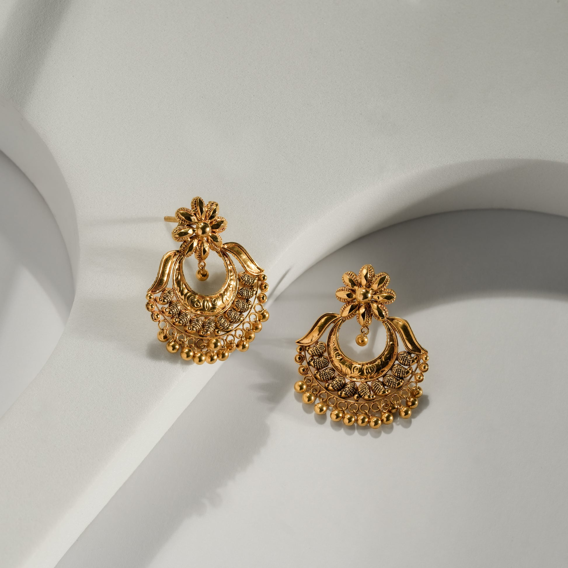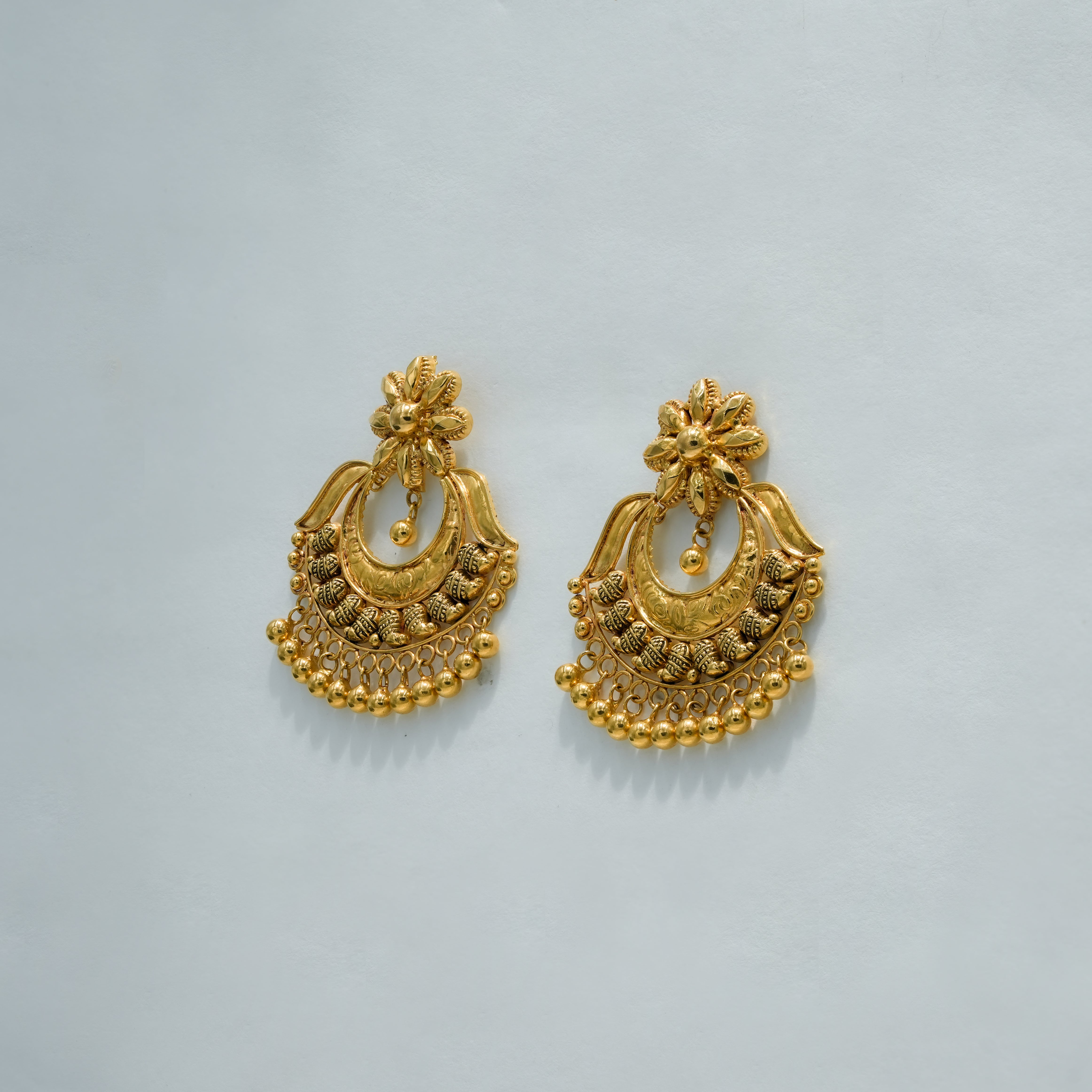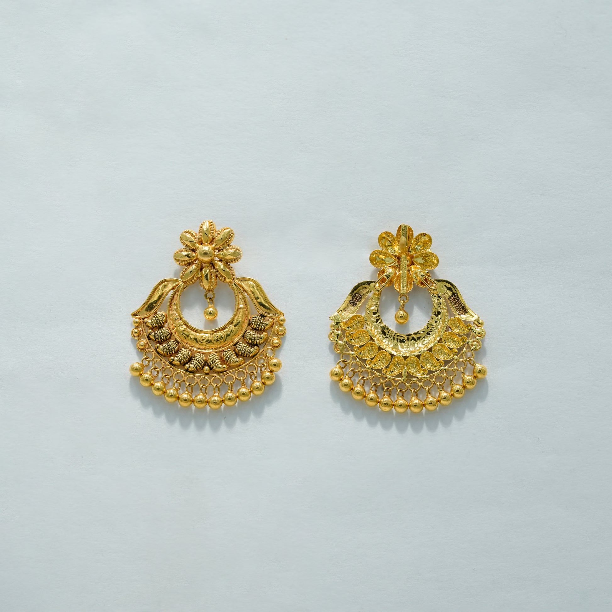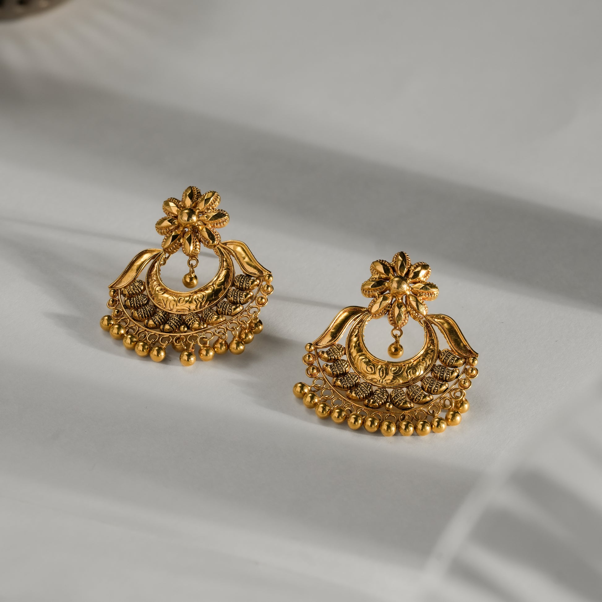 22k Yellow Gold Antique Finish Traditional Gold Chandbali Earrings