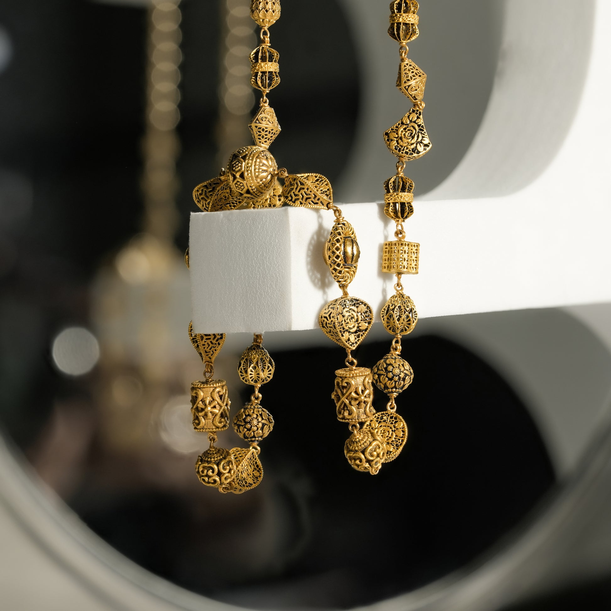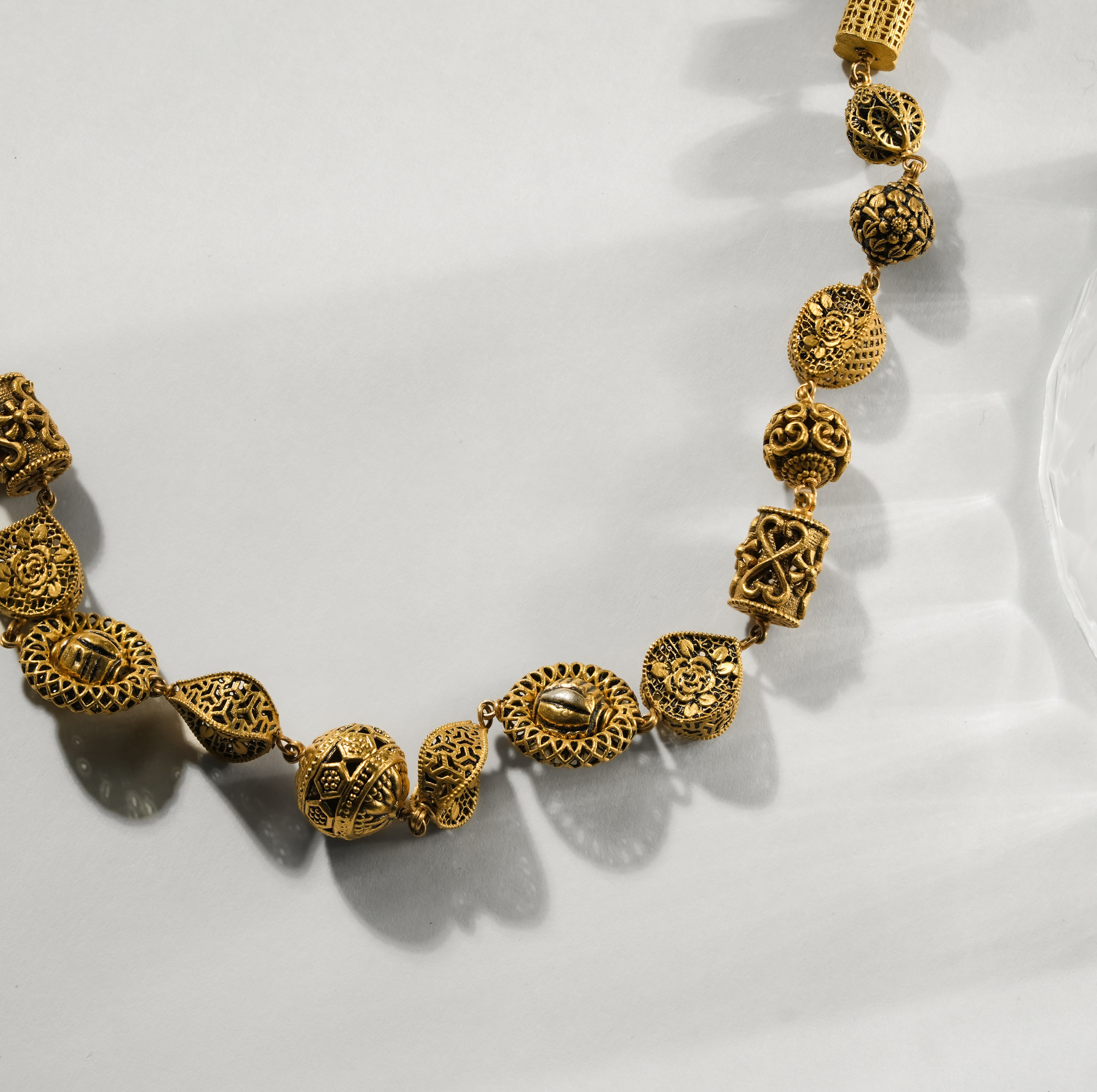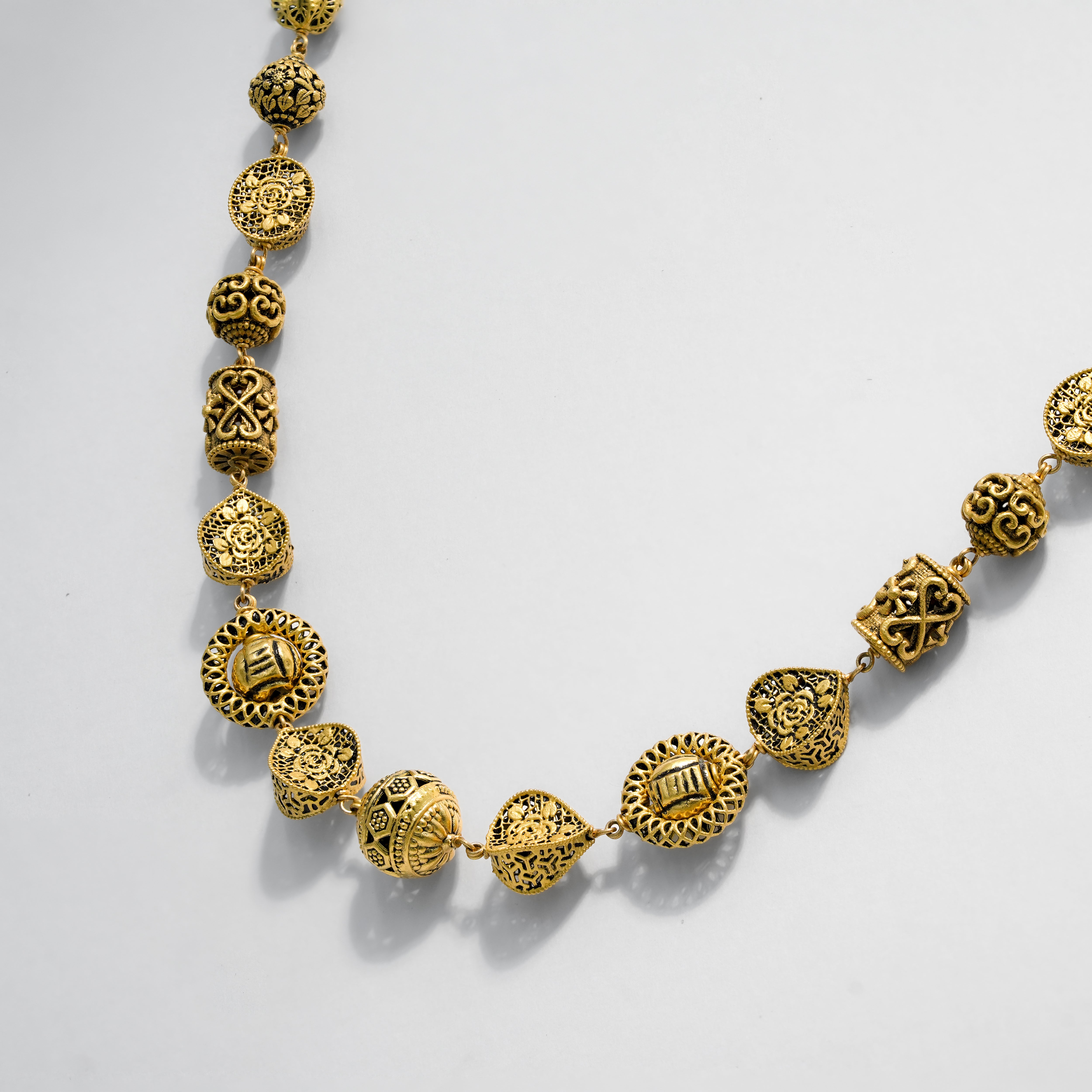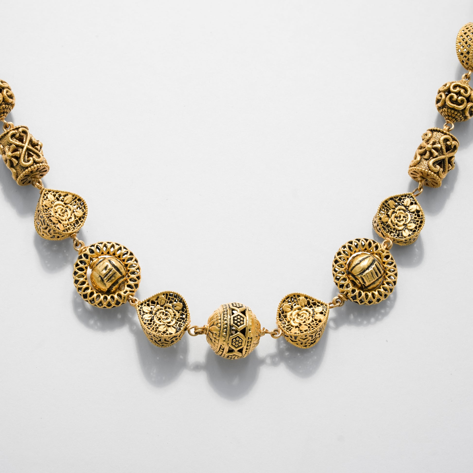22k Yellow Gold Heritage Filigree Gold Bead Necklace