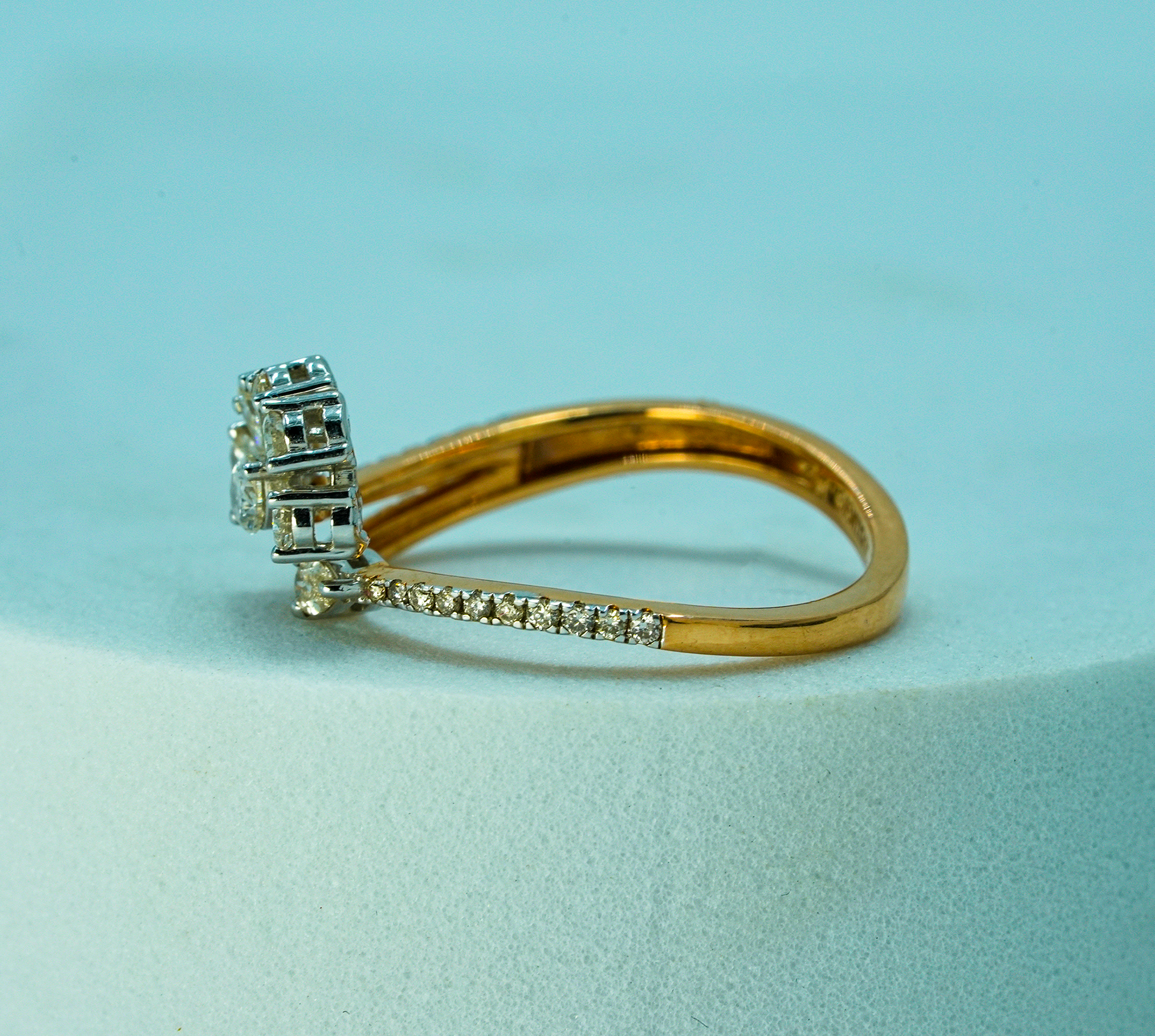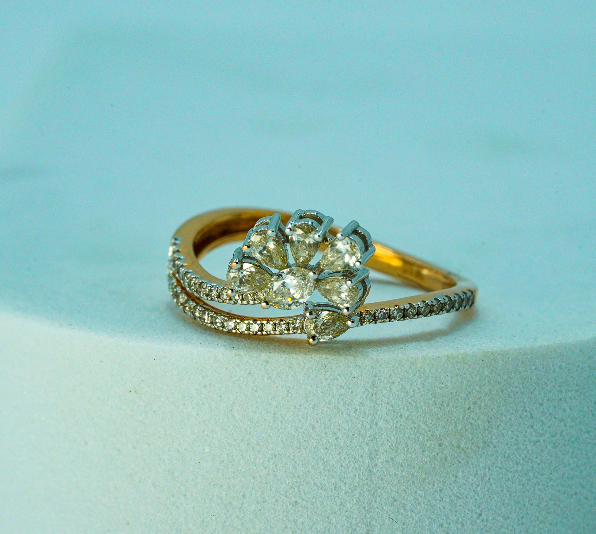 14K Solid Gold Floral Natural Diamond Cluster Ring